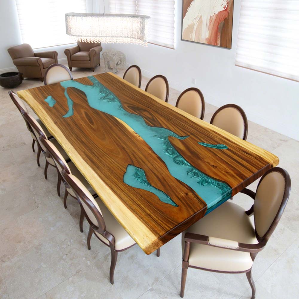 Elite Custom Walnut Wood Turquoise Kitchen Epoxy Resin River Table ECT-117