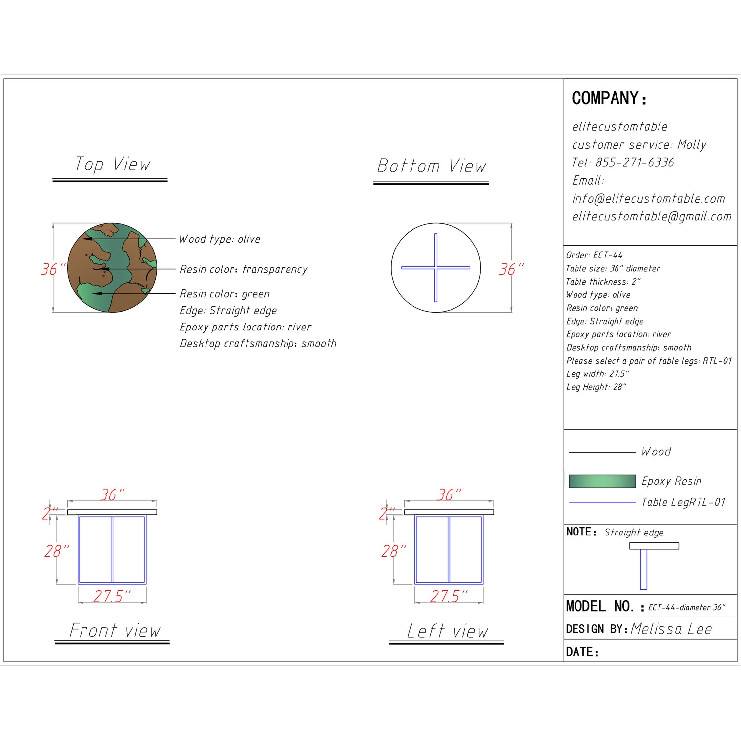 Elite Olive Wood & Emerald - Green Epoxy River Landscape Round Table ECT-44 is backordered and will ship as soon as it is back in stock.