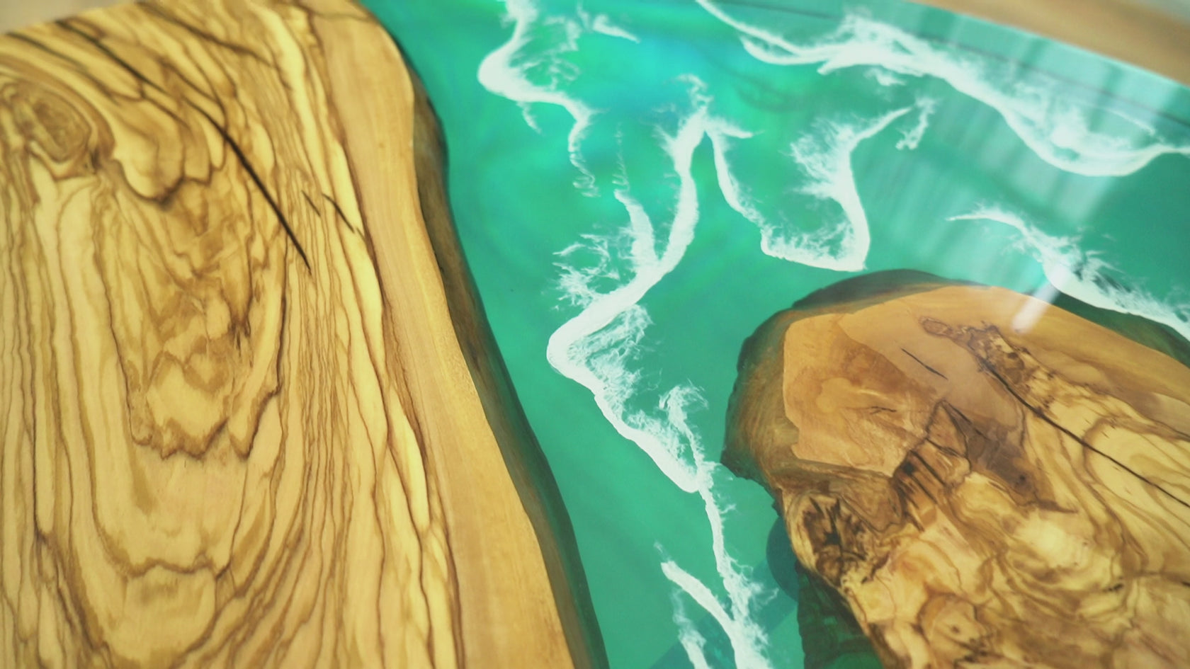Elite Olive Wood & Black Epoxy Round Table ECT-127
