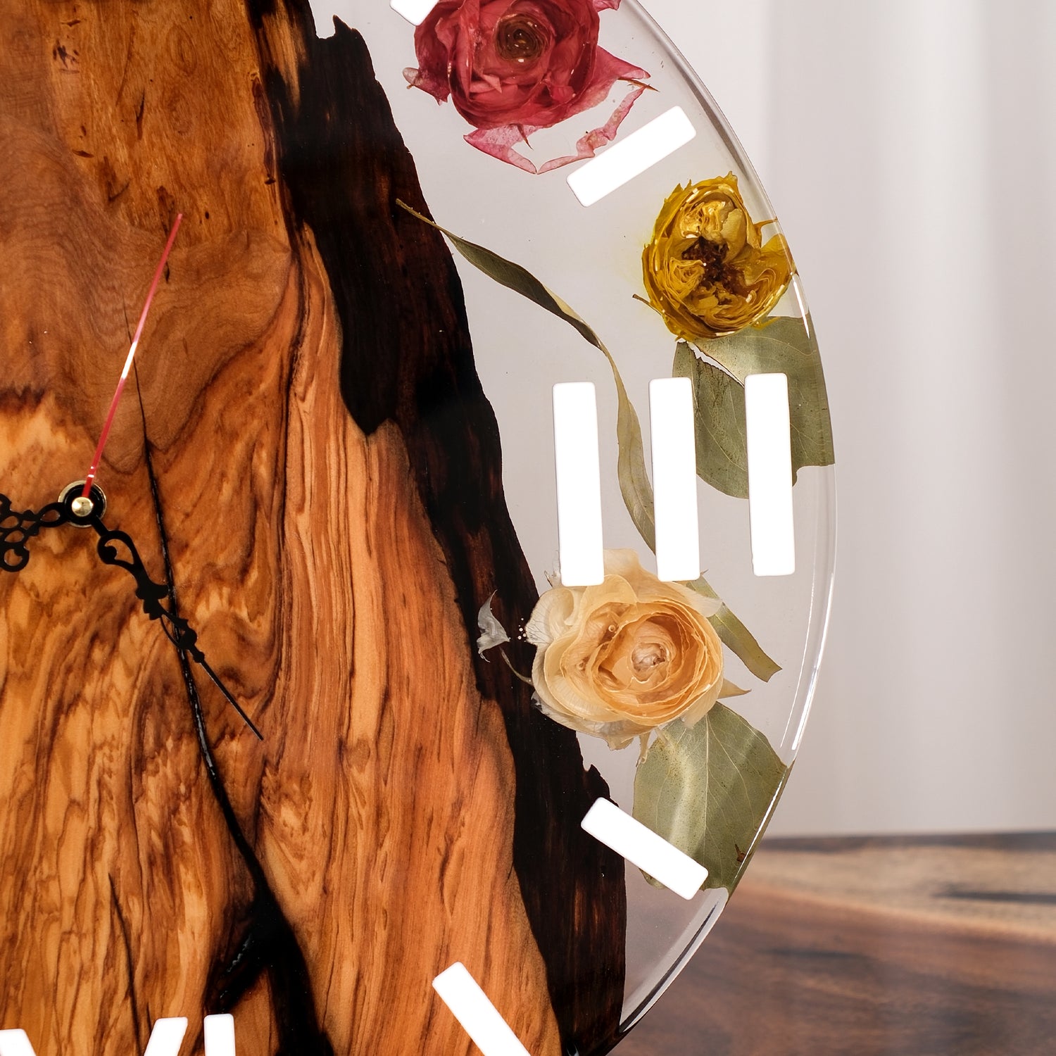 Elite Poplar Wood Dried Flower Epoxy Resin Wall Clock EWC-12 - 16''