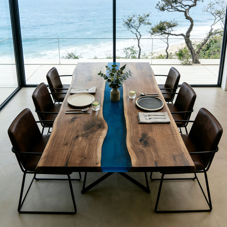 Elite Luxury Walnut Ocean Wave Resin Dining Table – Modern Straight Edge Coastal Centerpiece ECT-279
