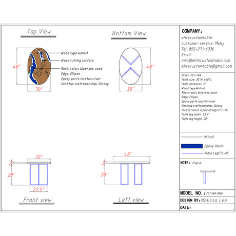 Regular price $875.00Unit price /UnavailableElite Oval Black Walnut Table with Turquoise Resin Inlay ECT-200