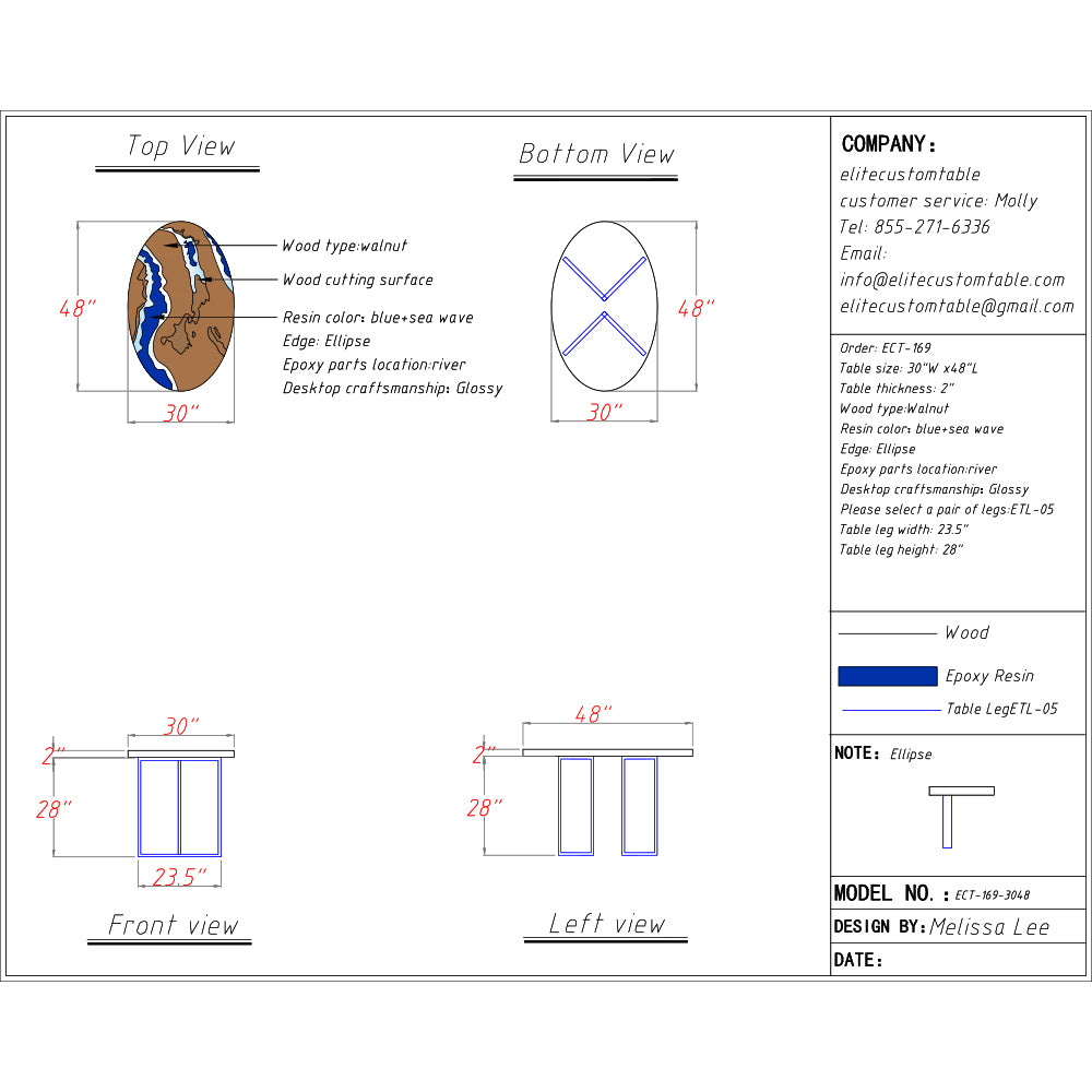 Walnut Wood with Blue and White Ocean Wave Epoxy Resin Oval Dining & Cofffee Table ECT-169 is backordered and will ship as soon as it is back in stock.