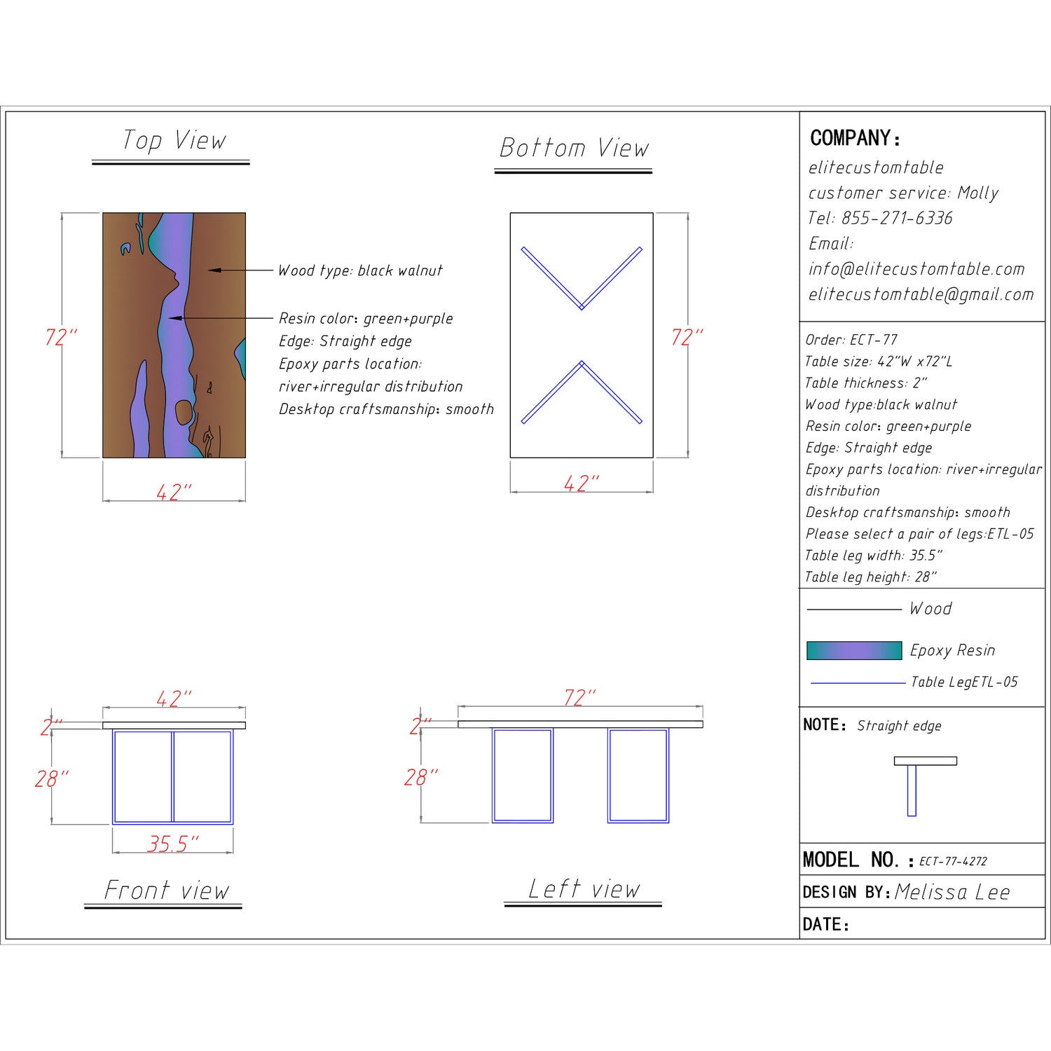 If you’d like a fully custom design, just email us at info@elitecustomtable.com