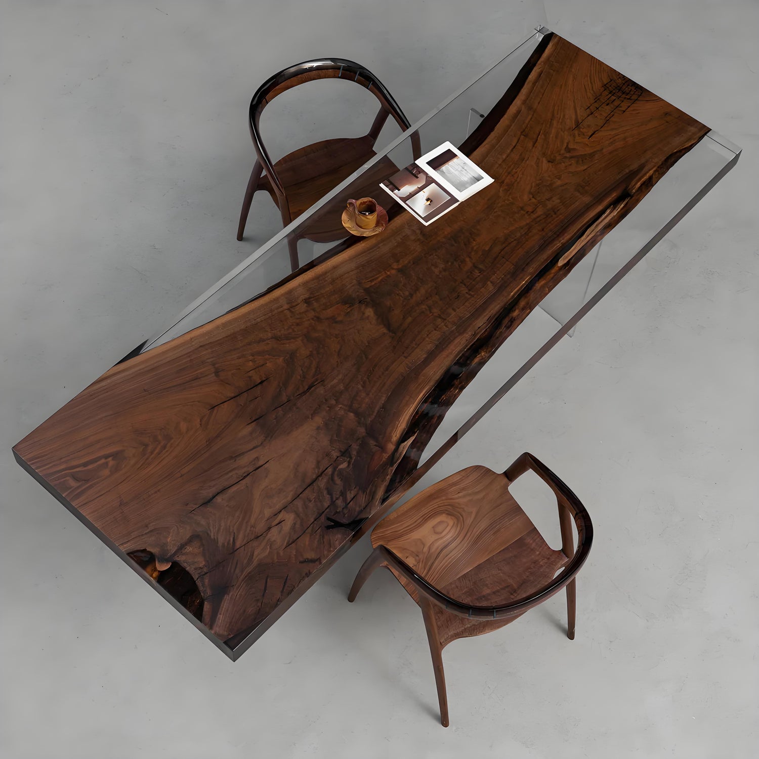 Elite Black Walnut Straight Edges Clear Epoxy Dining Table 33.46"Wx92.51"L, EIT-30