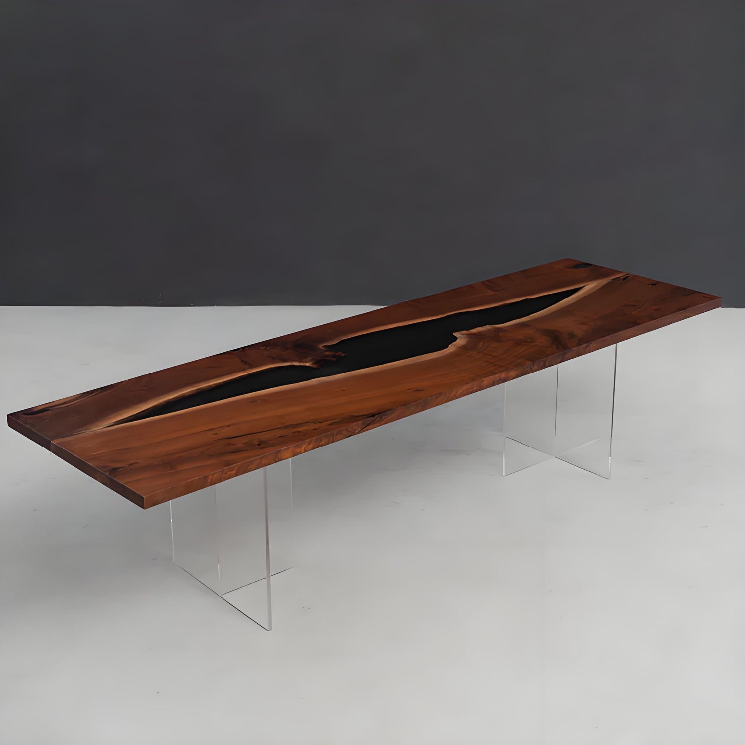 Elite Black Walnut Wood Transparent Black Epoxy Resin Table 31.88"Wx107.48"L, EIT-26
