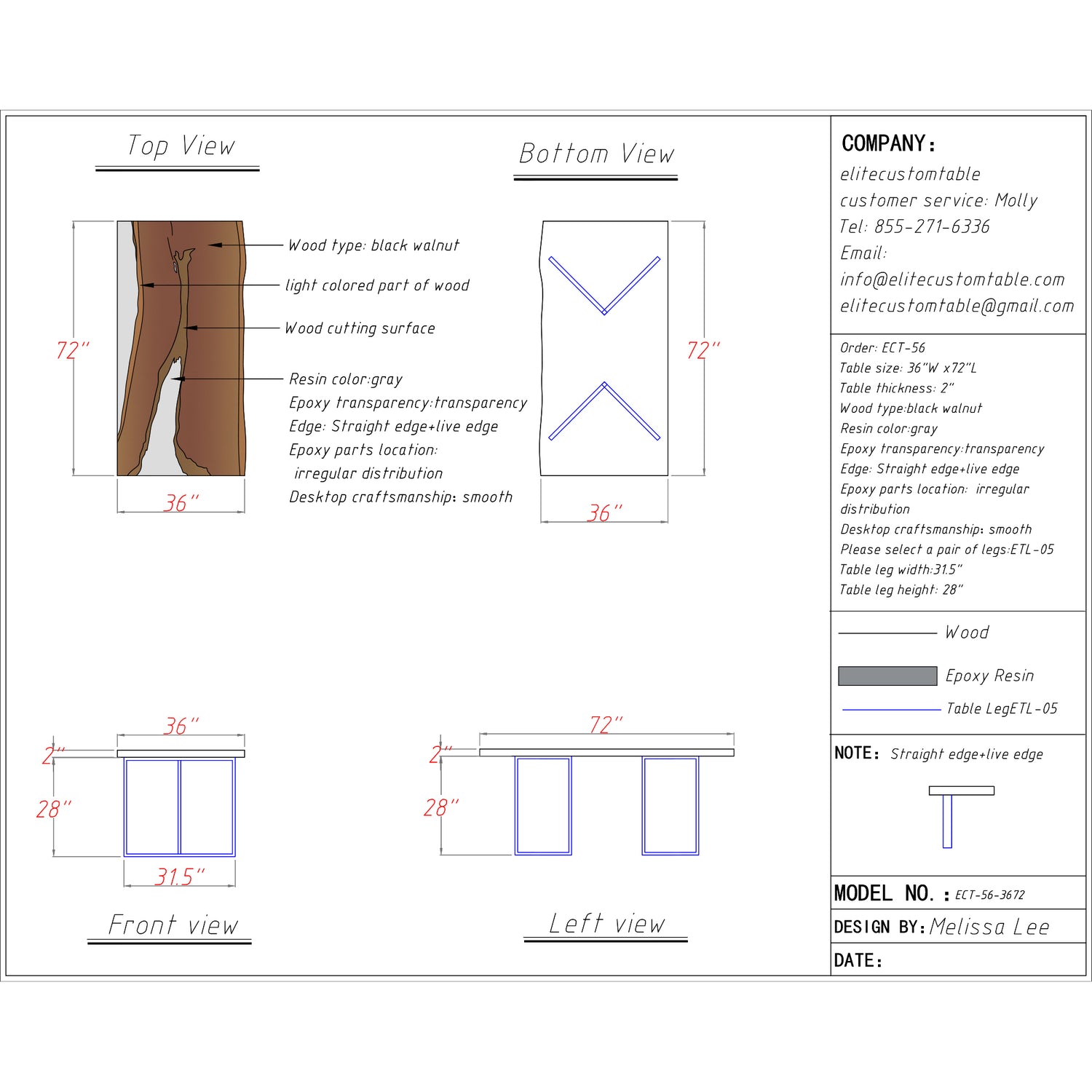 If you’d like a fully custom design, just email us at info@elitecustomtable.com