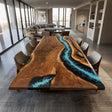 Elite Custom Black Walnut Resin Dining & Conference Table with Turquoise Resin Swirls ECT-89