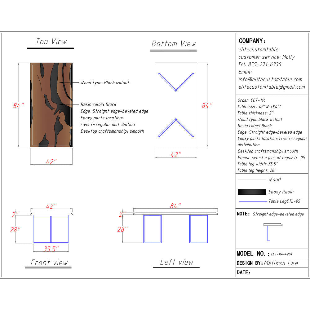 Elite Custom Black Walnut Resin Table for Dining & Office & Conference ECT-114