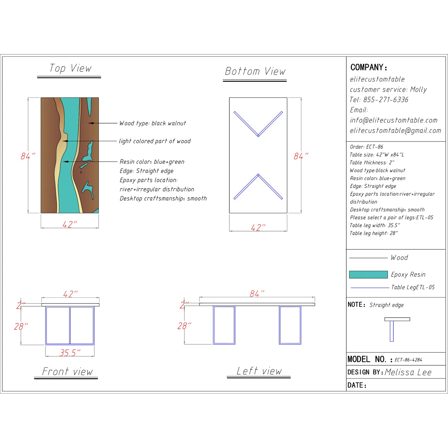 If you’d like a fully custom design, just email us at info@elitecustomtable.com
