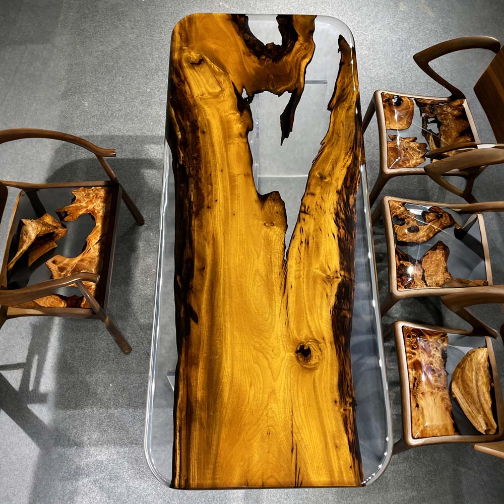 Elite Golden Camphor Wood & Transparent Epoxy Resin Dining Table ECT-143