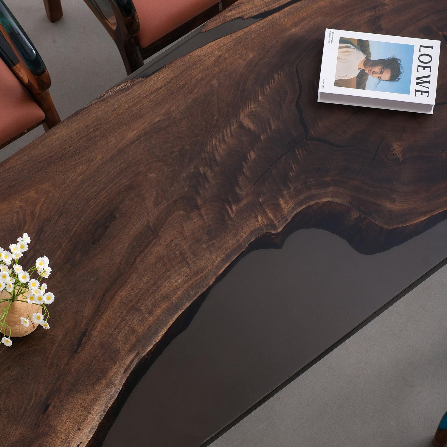The Black Walnut Resin table flaunts the most exquisitely delicate grain and the top - notch texture, which is rightfully crowned as the aristocrat in the realm of wood tables. Every single piece of this table appears to be the flawless culmination of nature's bounty and masterful craftsmanship. Its deep and rich color exudes an air of sophistication and luxury. The consistently high levels of hardness, strength and stability of black walnut make the tables resistant to wear and tear and highly durable. Even after years of use, it retains its shape and structural integrity, making it a quality choice for a long-term investment. With its durable construction and timeless design, this table is sure to be a favorite in your home for years to come.