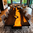 Elite Volcanic Stream Black Walnut Dining Table With Lighted Resin ECT-130