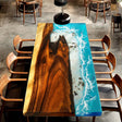 Elite Walnut Wood with Blue Seaside & Wave Epoxy Resin Dining Table ECT-196