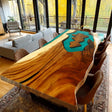 Elite Walnut Wood with Transparent Lake Green Epoxy Resin Dining Table ECT-177