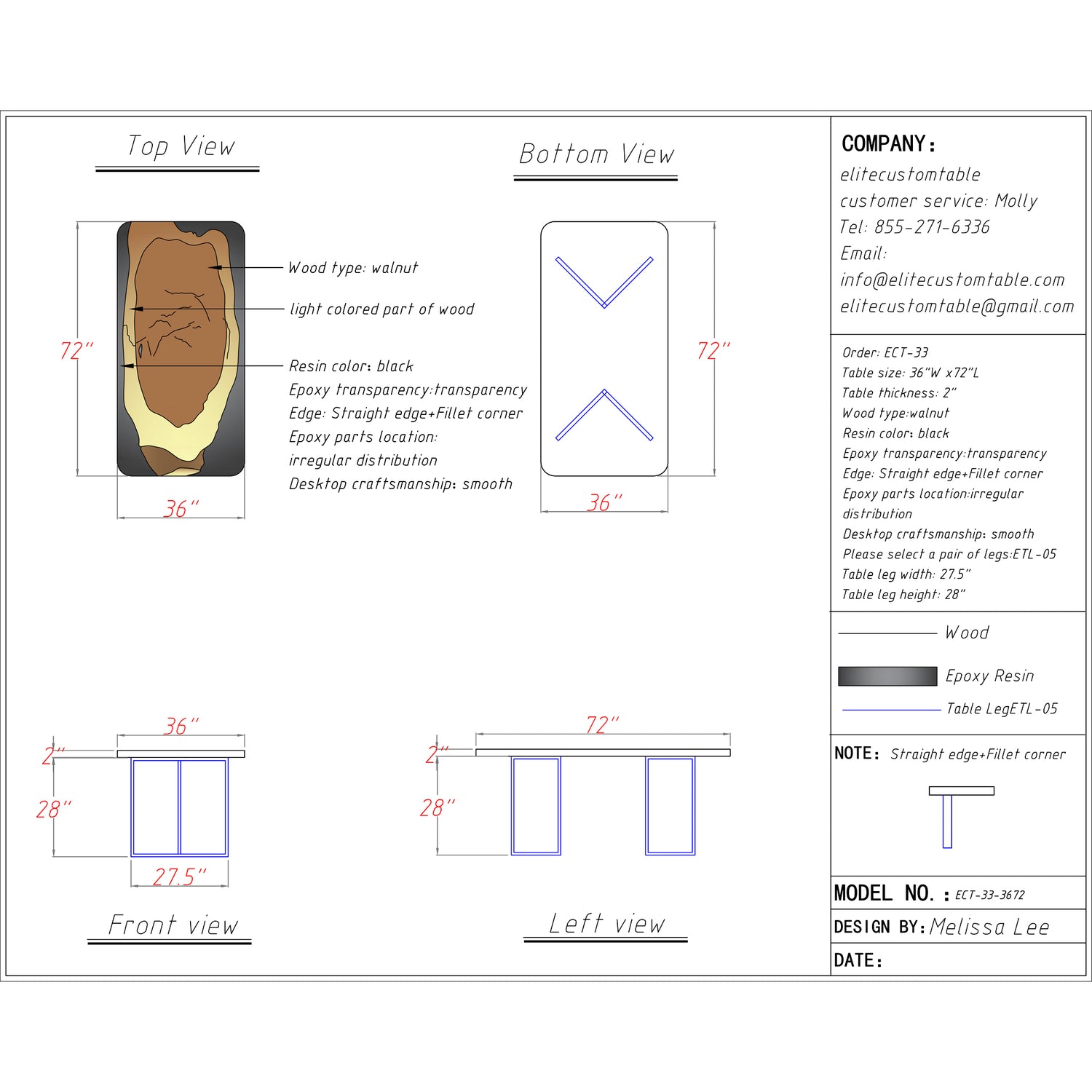 If you’d like a fully custom design, just email us at info@elitecustomtable.com