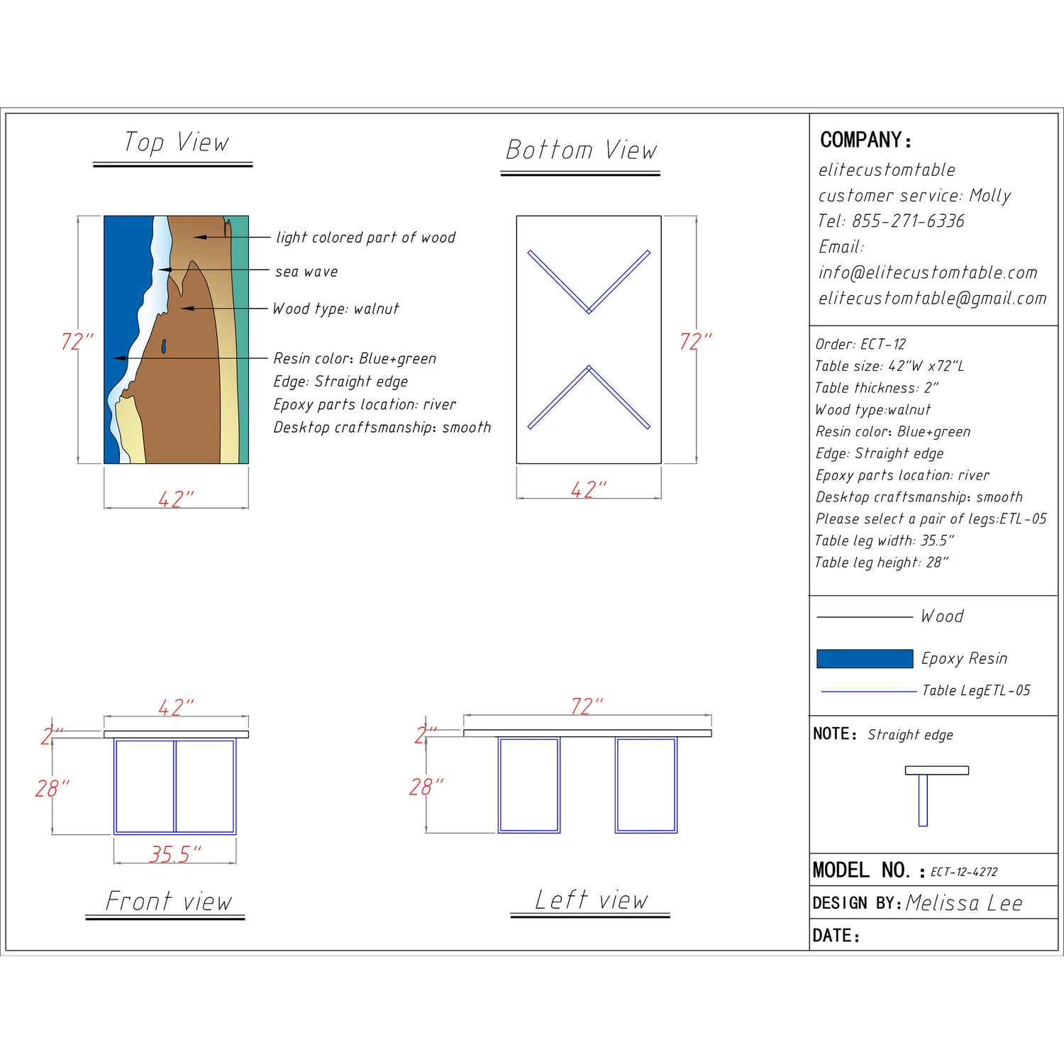Elite Walnut Wood & Blue Ocean - Wave Epoxy Resin Dining Table ECT-12 is backordered and will ship as soon as it is back in stock.