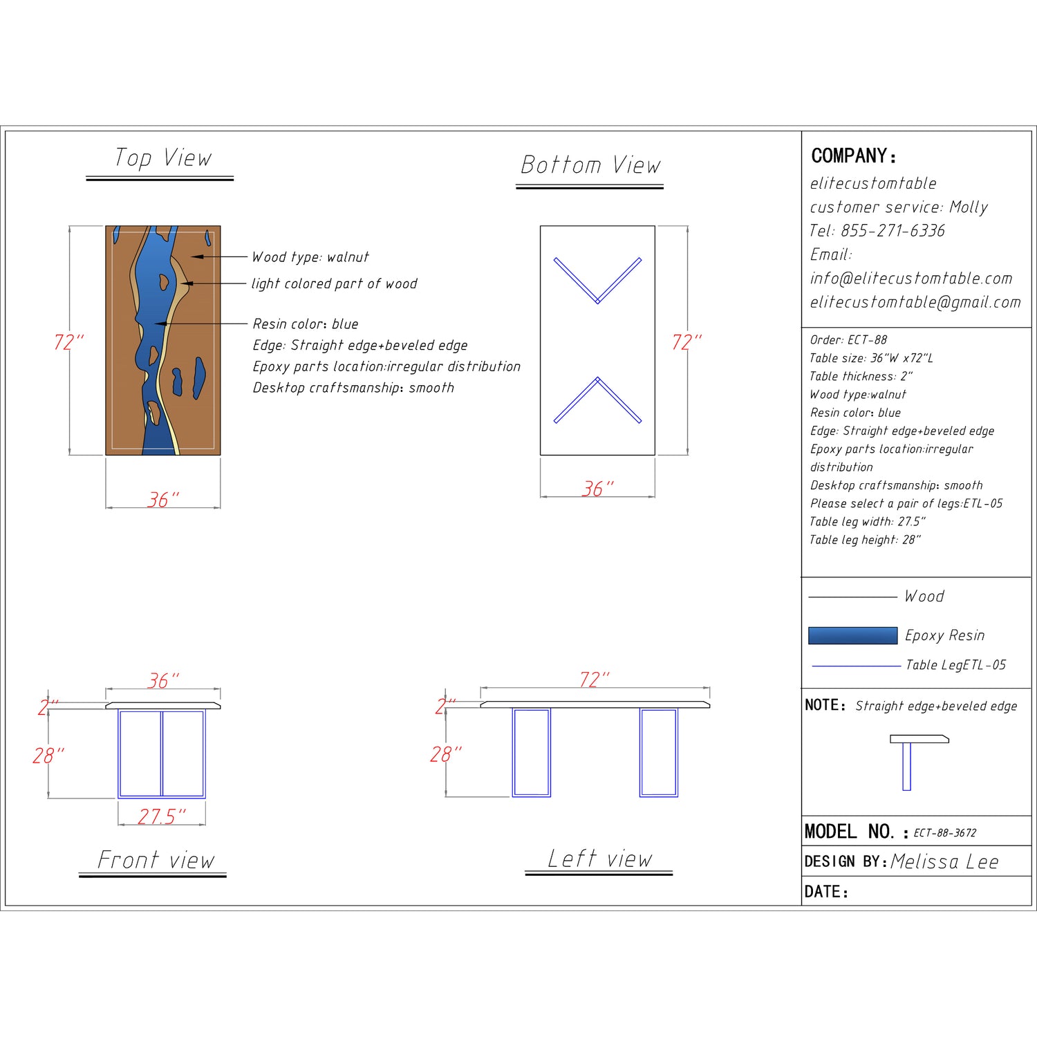 If you’d like a fully custom design, just email us at info@elitecustomtable.com