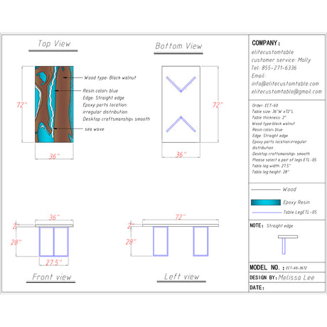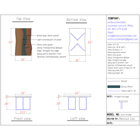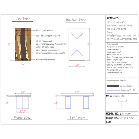 Regular price $2,993.08Unit price /UnavailableElite Walnut Live Edge Clear Epoxy Table 38.58"Wx90.55"L, EIT-31