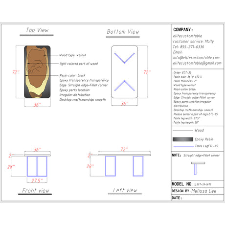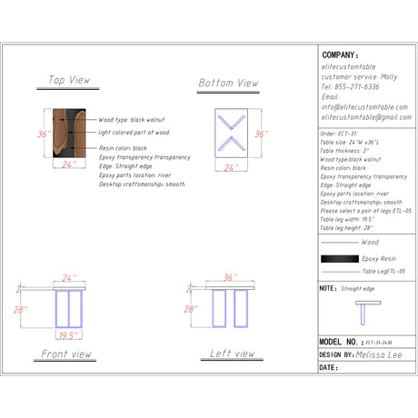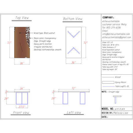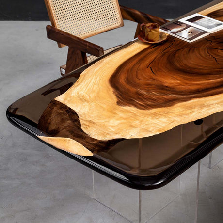 Regular price $875.00Unit price /UnavailableElite Black Walnut Wood Transparent Black Epoxy Resin Table 31.88"Wx107.48"L, EIT-26