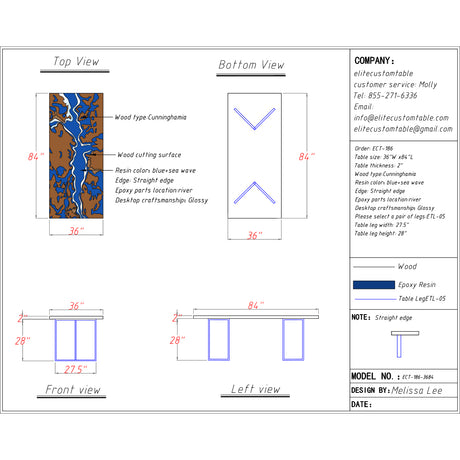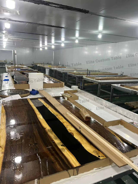 Elite Clear Epoxy Resin Poplar Wood Straight Edge Table 59.06"L x 31.50"W, EIT-07