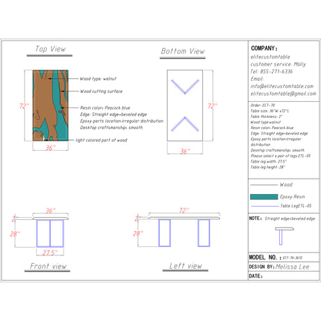 Regular price $875.00Unit price /UnavailableElite Straight - Edge Walnut Dining Table with Blue Resin Wave 72‘’L×48''W, EIT-12