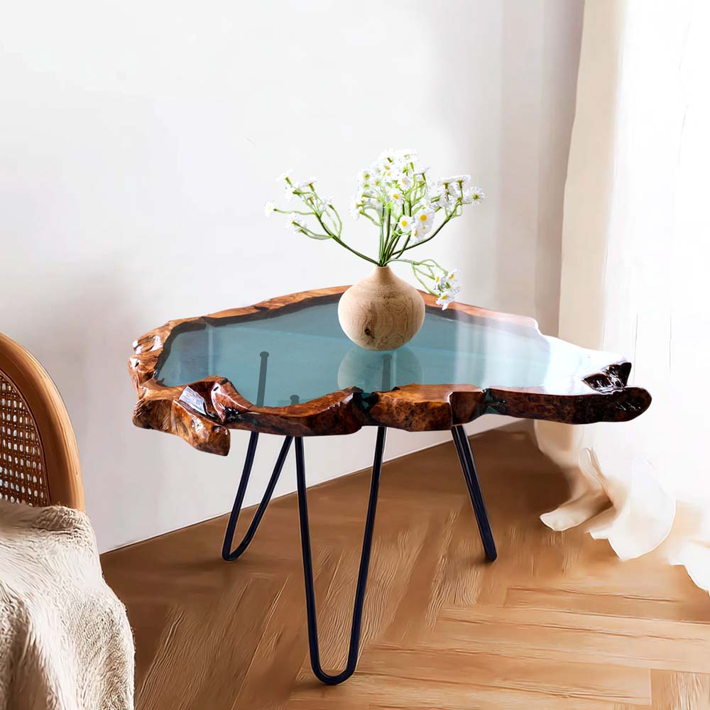 Elite Golden Camphor Wood with Transparent Epoxy Resin Coffee Table ECT-181