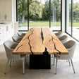 Elite Handcrafted Whitewashed Olive Wood Dining Table – Modern Straight Edge with Black Resin Accents ECT-282