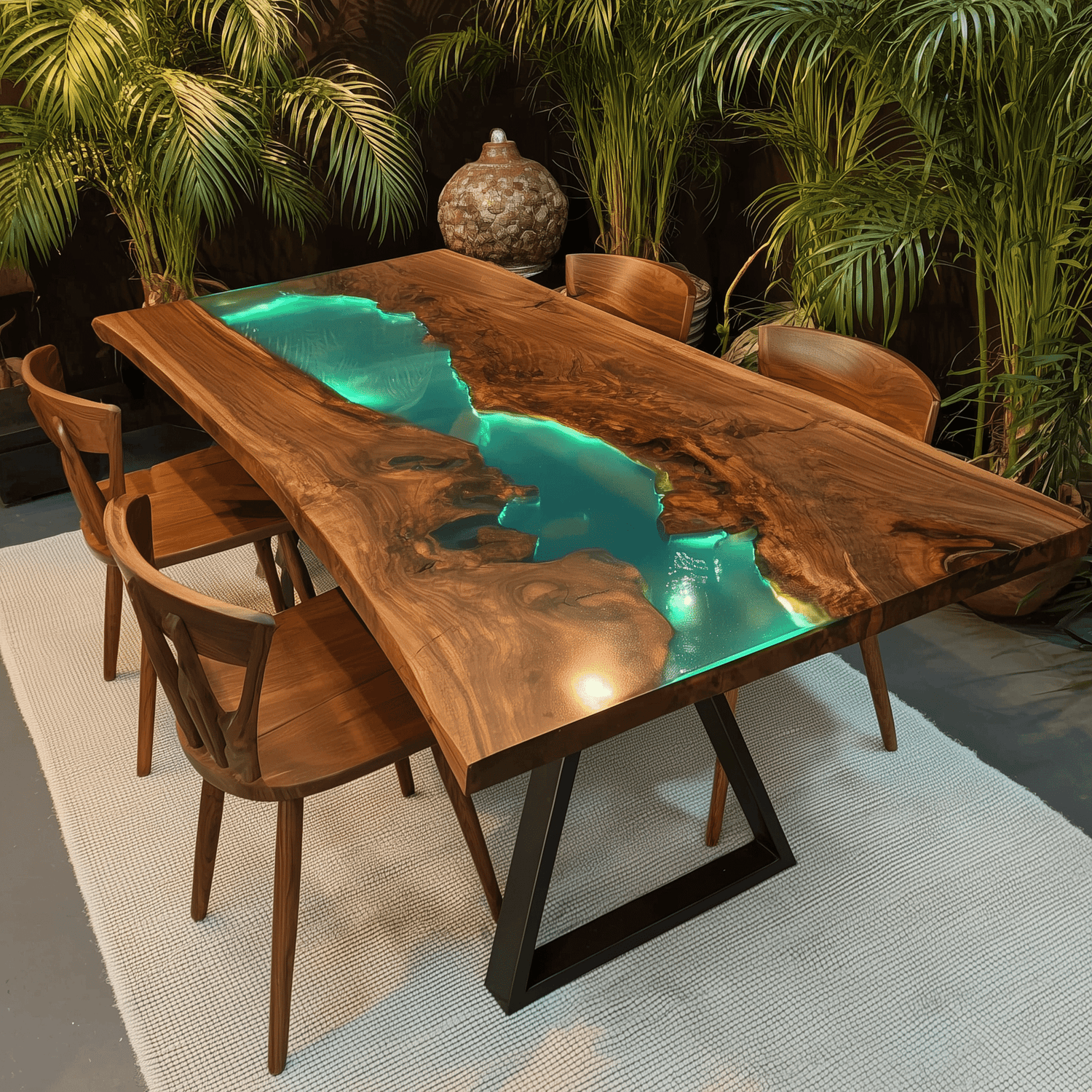Elite Straight - Edge Black Walnut Dining Table with Glowing Teal Resin Inlay ECT-237