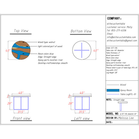 Regular price $3,068.98Unit price /UnavailableElite 47.05" Diameter Round Walnut Table with Ocean - themed Resin Inlay EIT-39