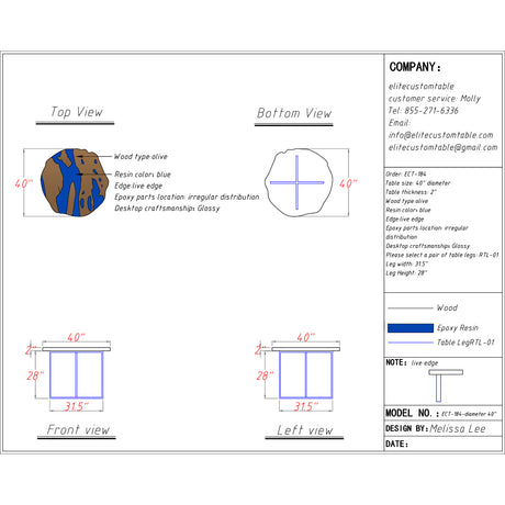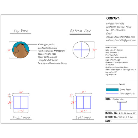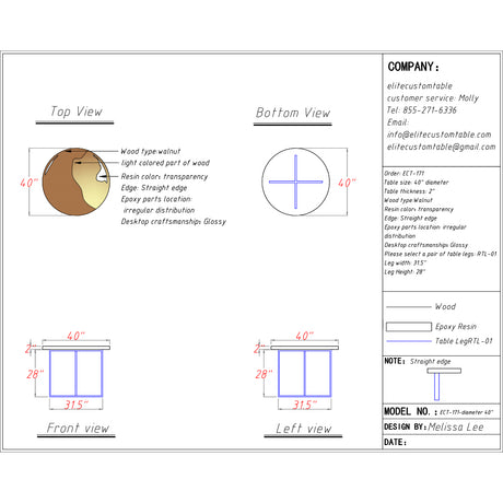 Regular price $875.00Unit price /UnavailableElite 39.37" Diameter Round Poplar Table with Clear Resin Inlay EIT-41