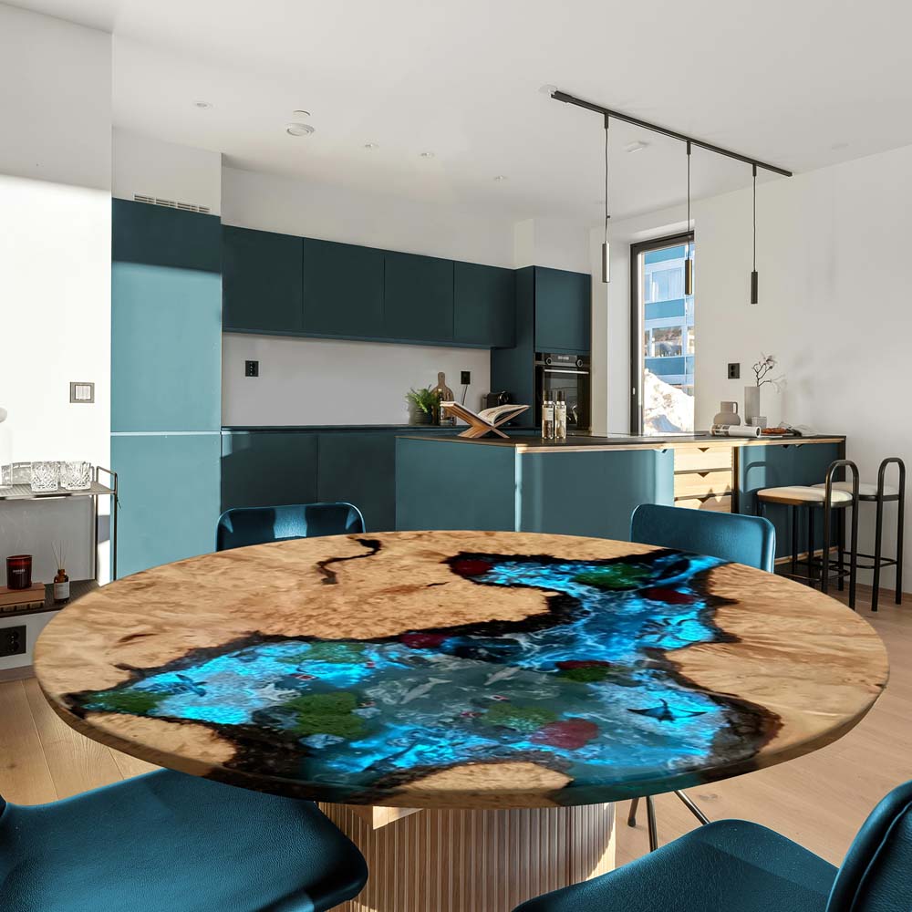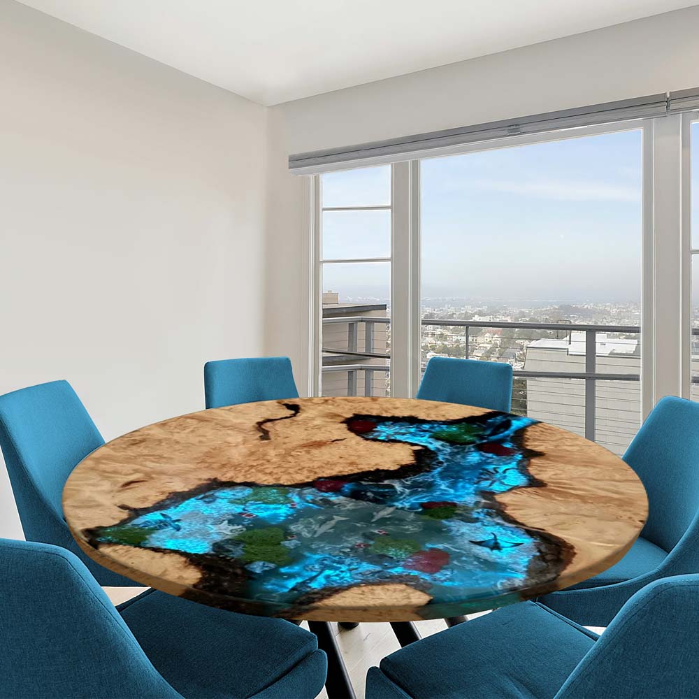Elite Custom Poplar Wood and Blue Resin Ocean Round Table ECT-122