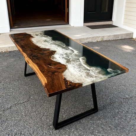 $875.00Unit price /UnavailableElite Walnut Wood & Coastal Beach Wave Epoxy Dining Table with Seashells ECT-142