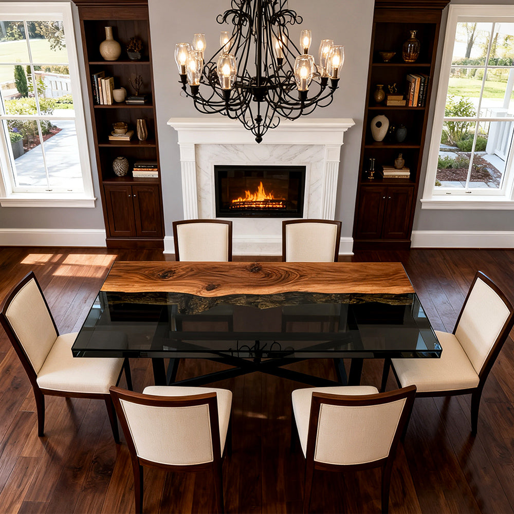 Elite Walnut Black Epoxy Rectangular Resin Dining Table – Elegant Luxury Statement Table ECT-265