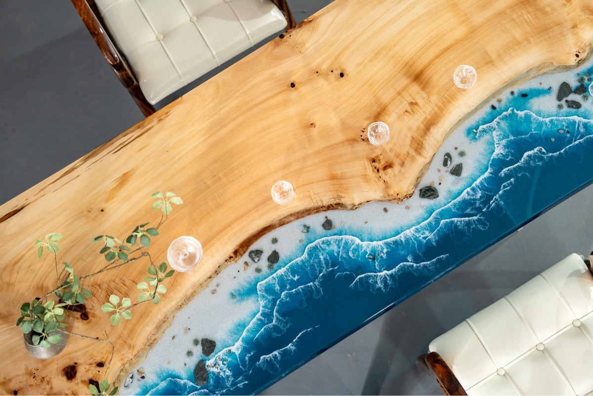 Elite Poplar Wood & Transparent Epoxy Resin Dining Table ECT-155