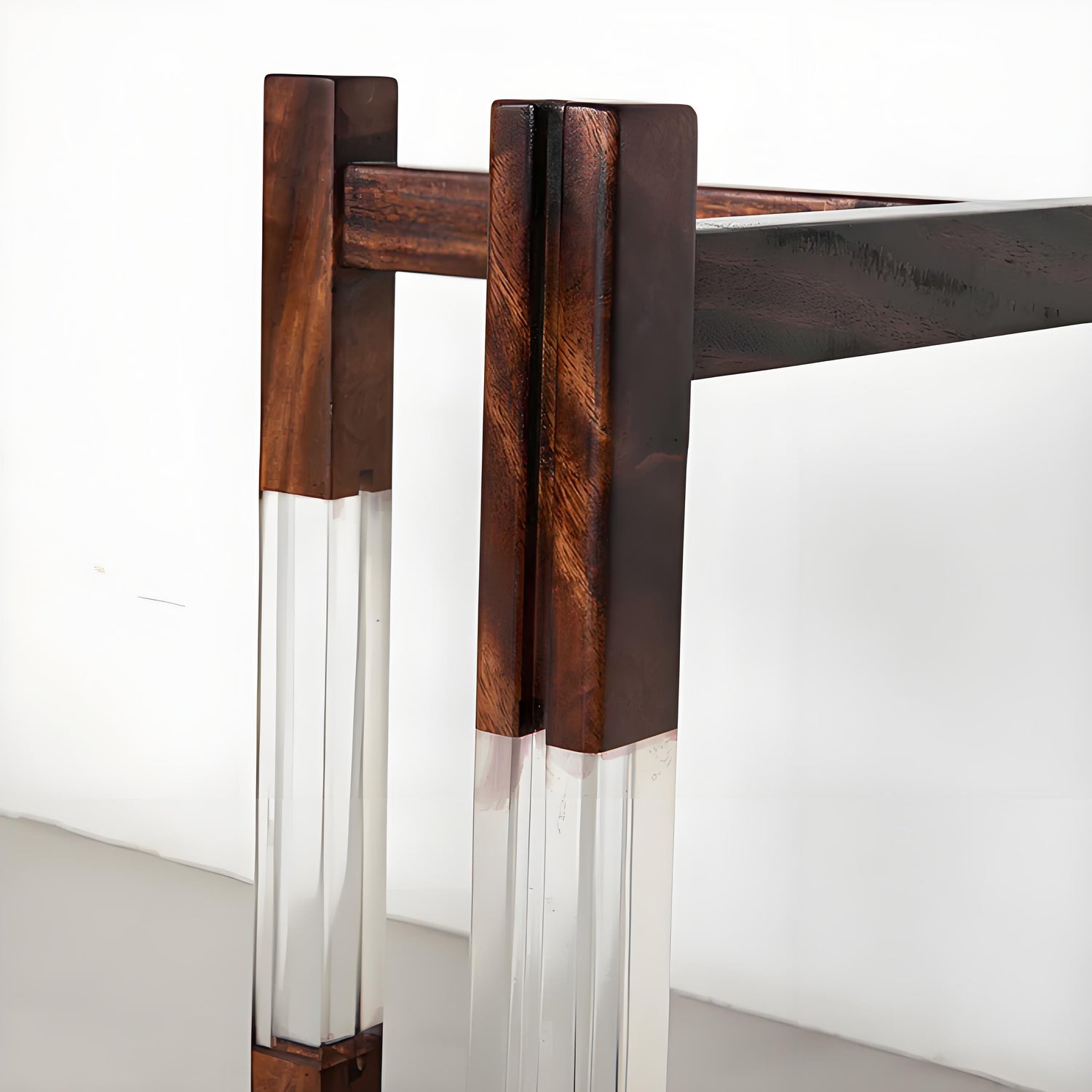 The transparent acrylic elements create a floating visual effect that lightens the furniture profile, while the wooden components provide structural integrity. This innovative hybrid design works particularly well in contemporary spaces, where it bridges the gap between organic warmth and modern minimalism.