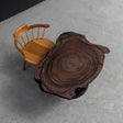 The coffee table showcases a natural and organic pattern inherent to black walnut wood. Crafted from a single slice of black walnut, it prominently displays the tree’s concentric growth rings, which tell the story of the tree’s age and growth over time. The live edge (the natural, uncut perimeter of the wood slice) preserves the raw, irregular contour of the tree trunk, adding a rustic and authentic touch. The wood’s rich, dark-brown hues and the subtle variations in its grain pattern create a visually appealing, nature-inspired design, as if a piece of the forest has been brought indoors.