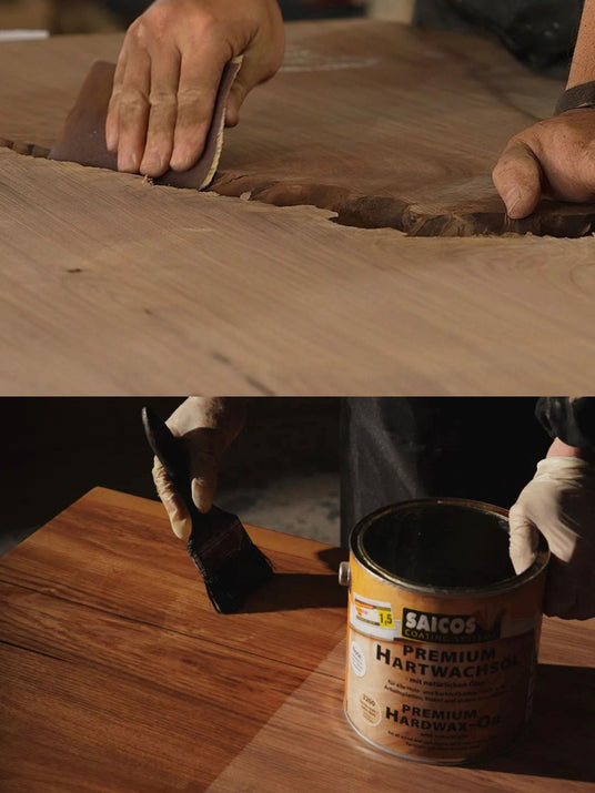 Elitecustomtable leaves no detail untouched, even the smallest edges of the boards are carved with the utmost care. Relying on our skillful craftsmanship, the outer layer of the wood is removed while the natural part of the original wood's edge is retained. Then, hand - sanding is carried out, starting from 120 - grit sandpaper and going up to 600 - grit, gradually increasing the fineness. Through this cycle of manual work, the surface is made smooth.
