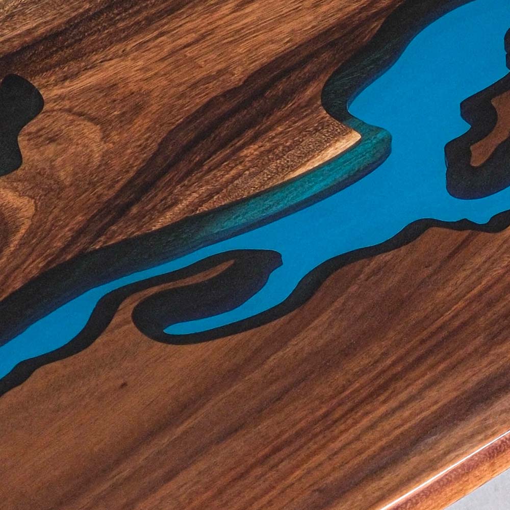 Elite Black Walnut Wood River Table with Blue and Black Epoxy Resin Inlay ECT-185