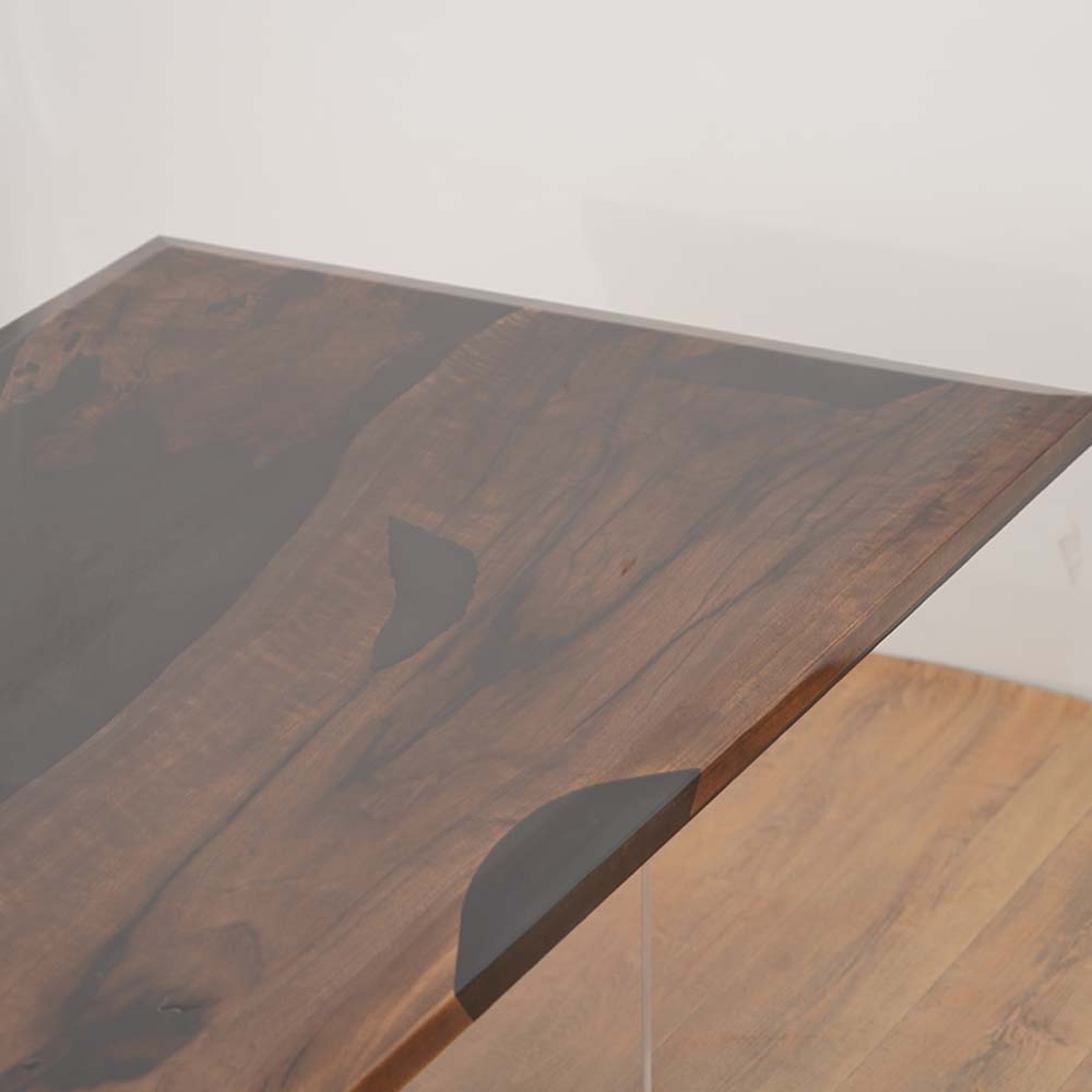 The unique wood texture and the collision of black resin of this epoxy tabletop form an abstract work of art. It's a popular pick for those searching for a black epoxy dining table that offer a blend of traditional and contemporary design.