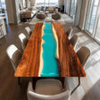 Elite Straight - Edge Walnut Dining Table with Turquoise Resin Inlay ECT-140