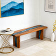 Each bench is handcrafted, showcasing organic wood grain paired with vibrant resin detail.