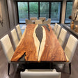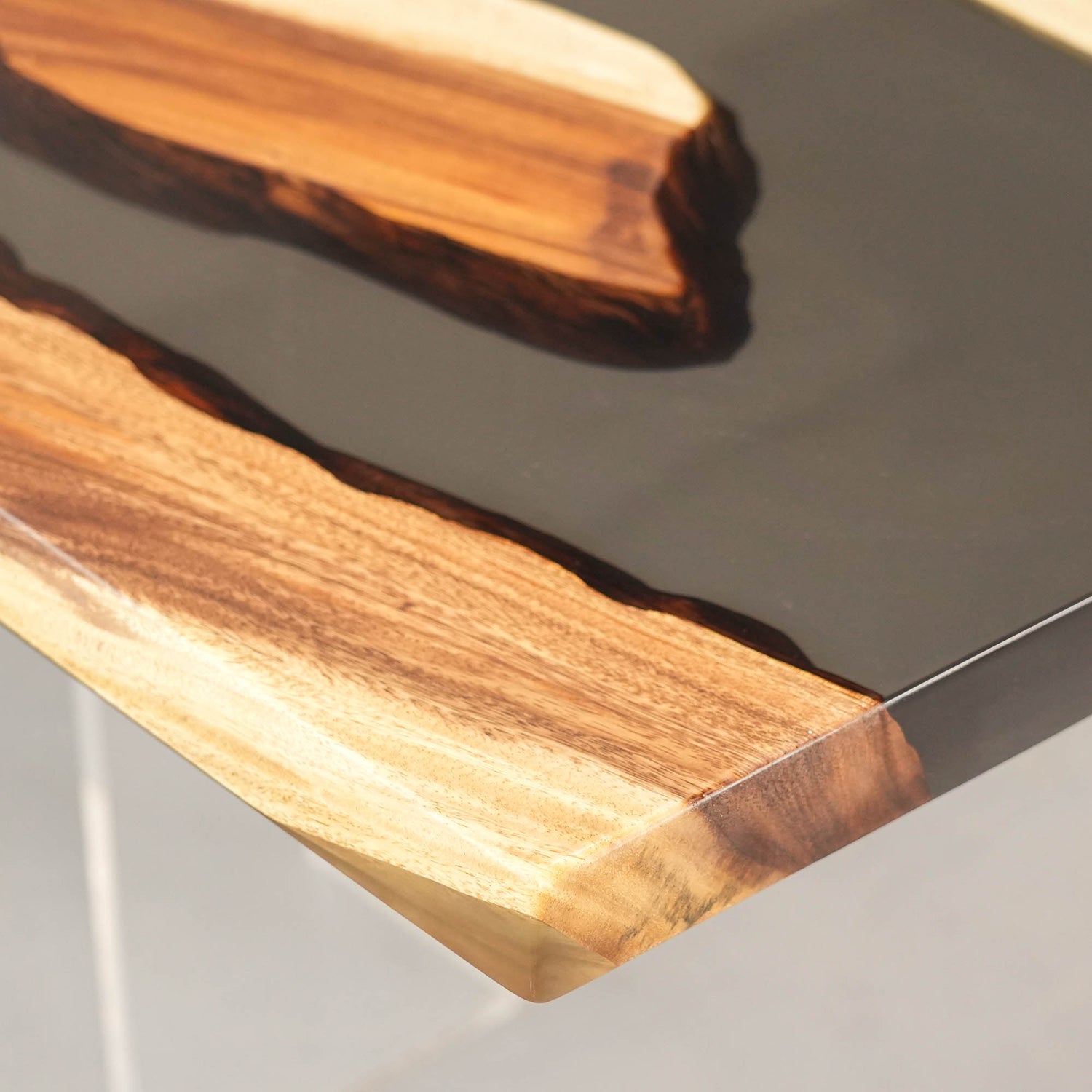 Elite Straight - Edge Walnut Dining Table with Semi - Transparent Black Resin 108"L×42"W, EIT-14